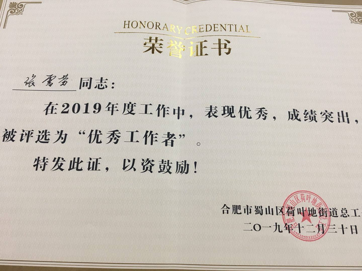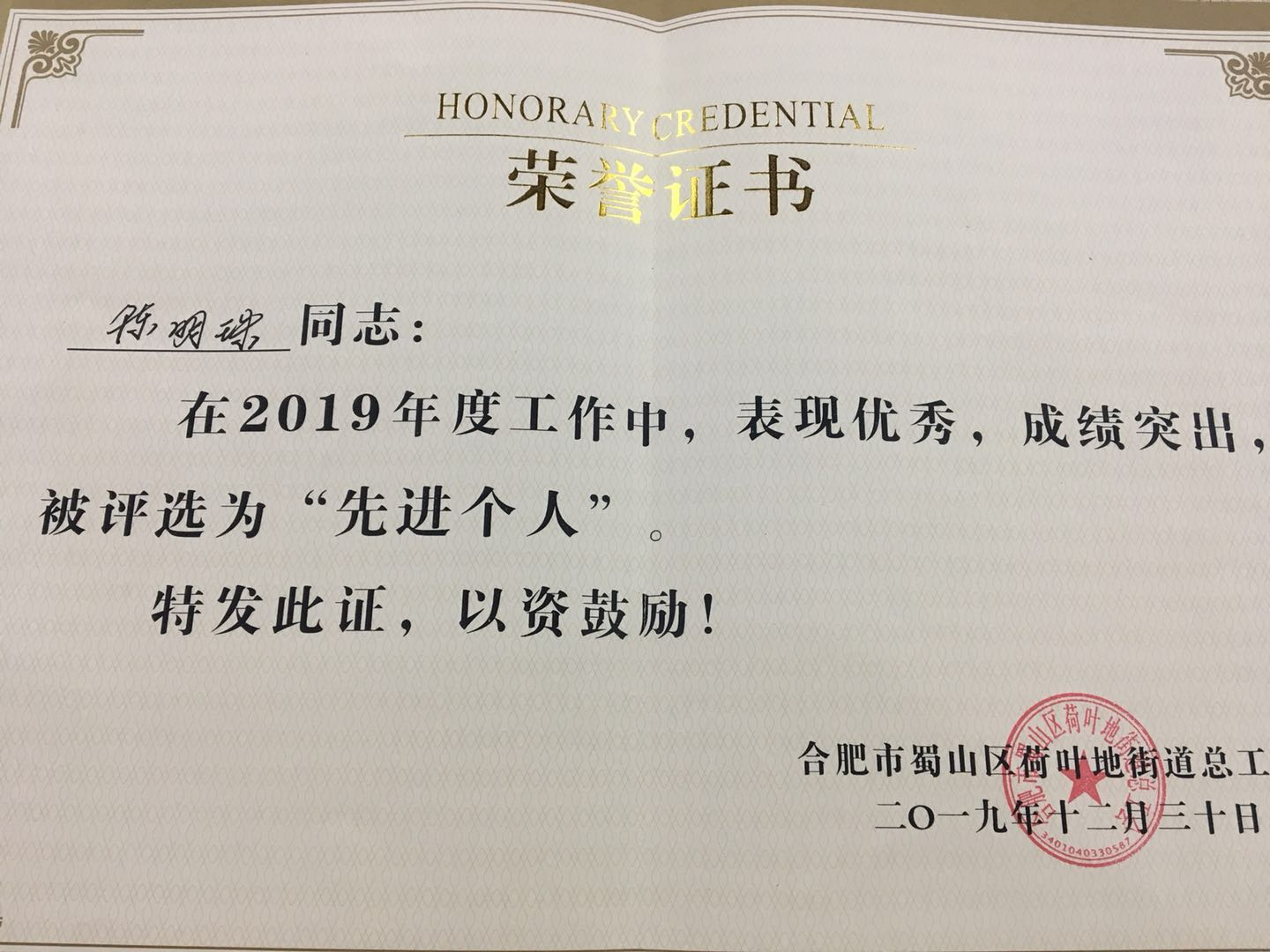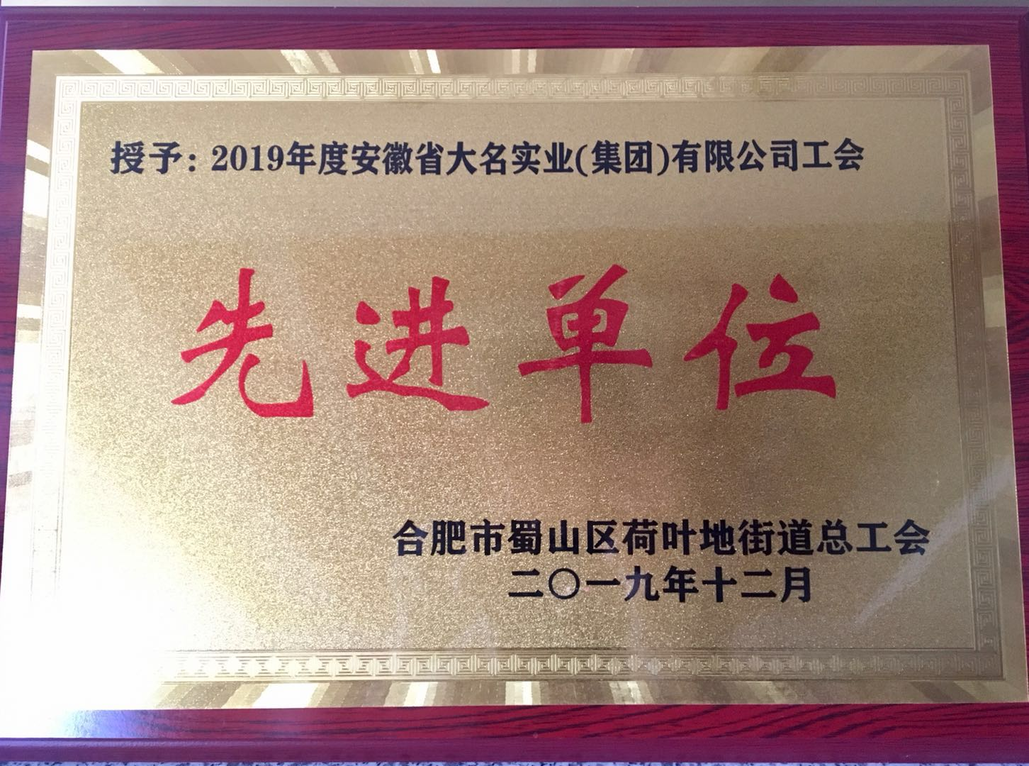 大名實(shí)業(yè)集團(tuán)榮獲2019年度合肥蜀山區(qū)荷葉地街道總工會(huì)先進(jìn)單位