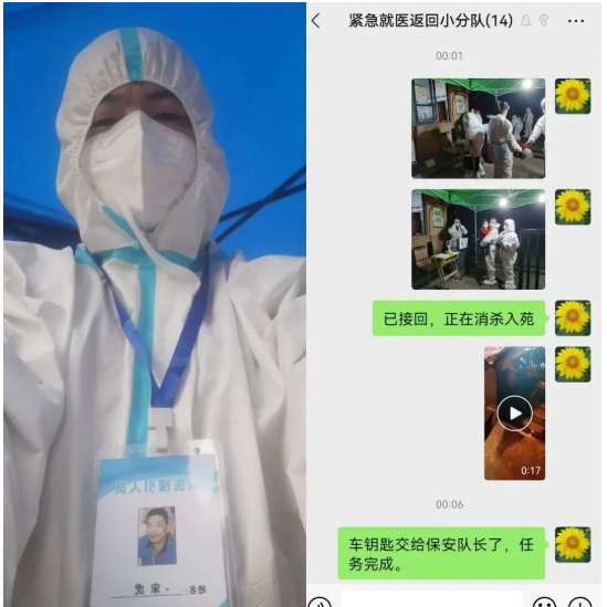 套上敬仰的“大白”防疫服,受命于社區(qū)調(diào)度,急封控區(qū)域病患者之所急,接送于指定各醫(yī)院之間,感受陌生人之間的溫暖,那一聲聲“拜托”和“感謝”,燃燒起奉獻(xiàn)的激情!11月6日我們迎來了解封的消息,我也圓滿完成了最后兩個任務(wù)。愿疫情不在,大愛長留!