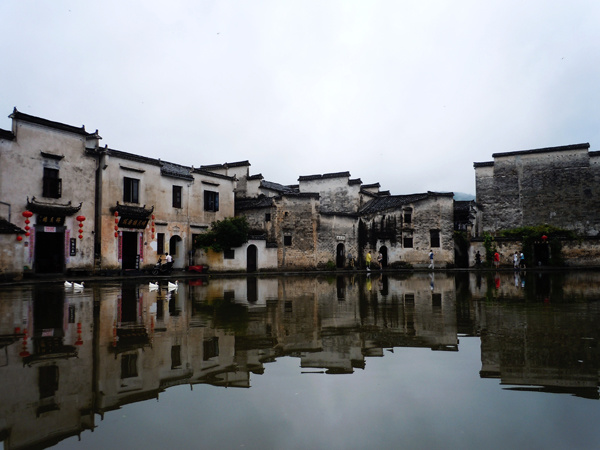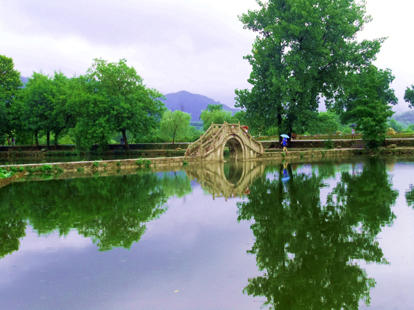 宏村,古稱弘村,位于黃山西南麓,距黃山市黟縣縣城11公里,整個(gè)村落占地30公頃。宏村是古黟桃花源里一座奇特的牛形古村落,既有山林野趣,又有水鄉(xiāng)風(fēng)貌,素有“中國(guó)畫里的鄉(xiāng)村”之美譽(yù)。村中各戶皆有水道相連,汩汩清泉從各戶潺潺流過,層樓疊院與湖光山色交輝相映,處處是景,步步入畫。閑庭興步其間,悠然之情濃烈得讓人心醉。