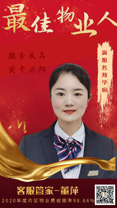 服務(wù)小故事:新冠疫情期間,董萍說(shuō)的最多的一句話就是“您好,我是您的管家小董……”為減少業(yè)主出門次數(shù),做好防護(hù)隔離,她主動(dòng)上門溝通解釋,攬下配送日用品及菜品的活,飛奔在超市與住戶之間,業(yè)主家燃?xì)庥猛?,她又幫忙辦理燃?xì)獬渲怠3掷m(xù)的高壓、快節(jié)奏工作模式經(jīng)歷了近兩個(gè)月,而董萍早已習(xí)慣。她也是一位母親、女兒、妻子,也渴望陪在自己家人身邊,但面對(duì)疫情和廣大業(yè)主,她毅然選擇堅(jiān)守崗位,在沒(méi)有硝煙的戰(zhàn)場(chǎng)中,她從未害怕、從未退縮。董萍用小小的身軀,投入到抗疫的防線,舍小家顧大家。平凡的崗位上,業(yè)主記住了她的身影,更感受到她的貼心與用心,片區(qū)新高的收繳率便是對(duì)她付出的最大認(rèn)可。