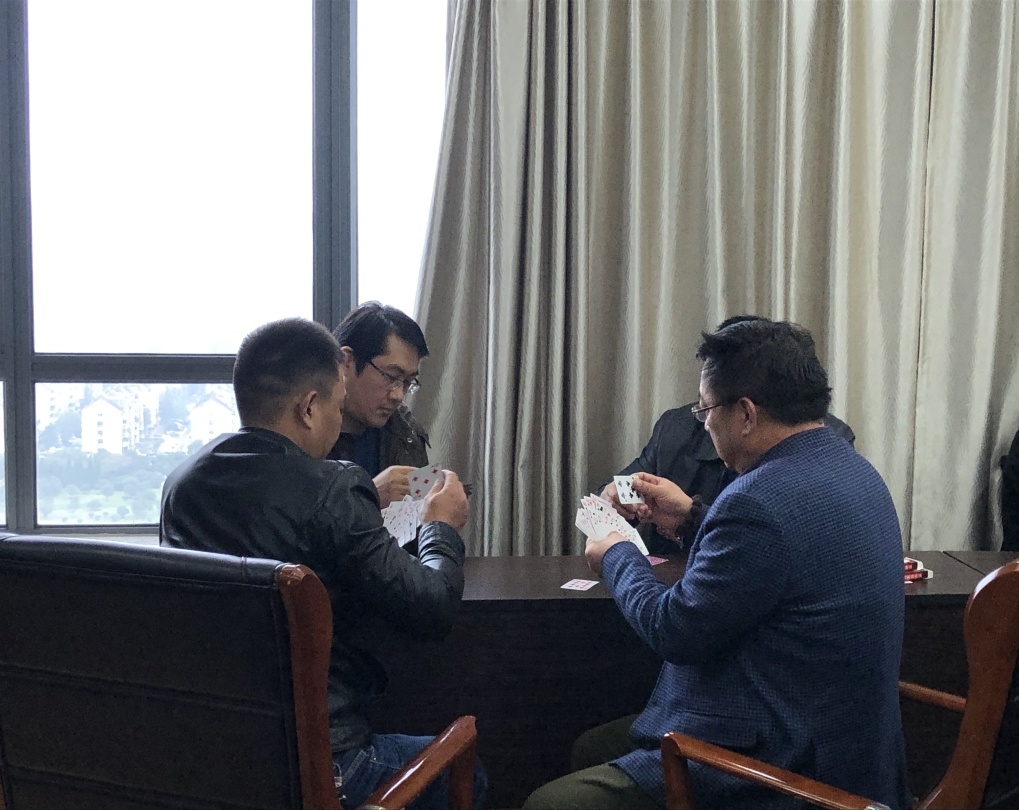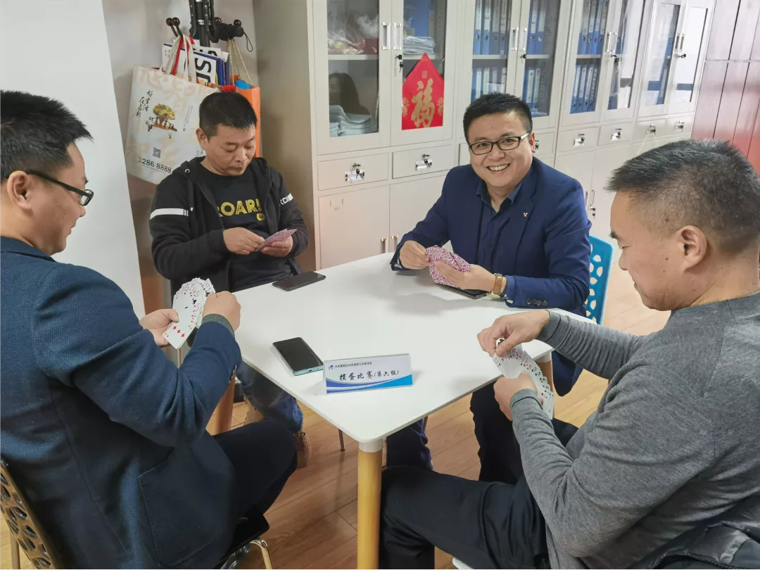 摜蛋比賽在實(shí)業(yè)本部會議室開賽,來自各產(chǎn)業(yè)公司的12組選手參賽。本次比賽為8局積分賽制,12組參賽人員通過現(xiàn)場抽簽,分為6組進(jìn)行首輪淘汰PK賽。賽場氣氛十分熱烈!