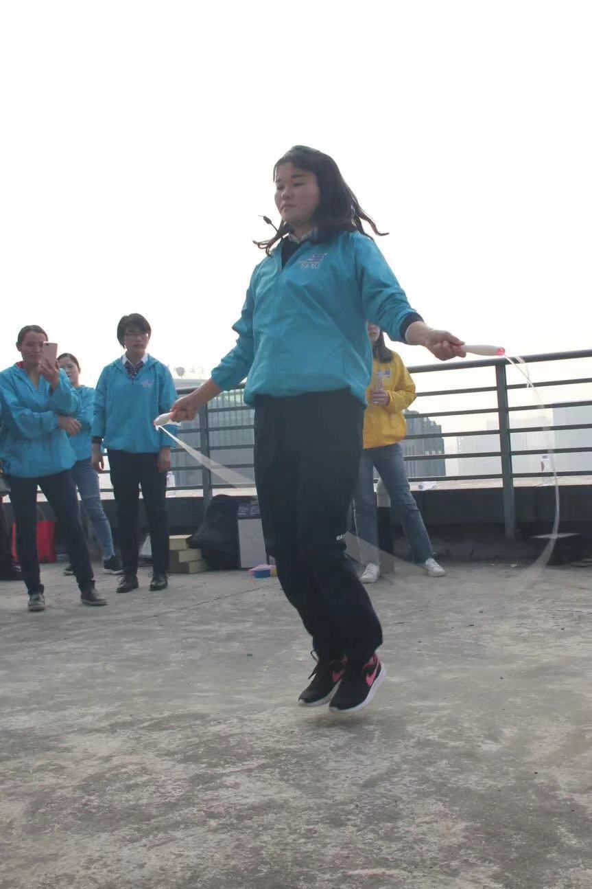 拔河比賽結(jié)束后,緊接著進(jìn)行了跳繩比賽,各產(chǎn)業(yè)列隊(duì)依次派出選手參賽。每隊(duì)6名隊(duì)員:3名男隊(duì)員、3名女隊(duì)員,每隊(duì)隊(duì)員單人比賽,成績累加為團(tuán)隊(duì)總成績。