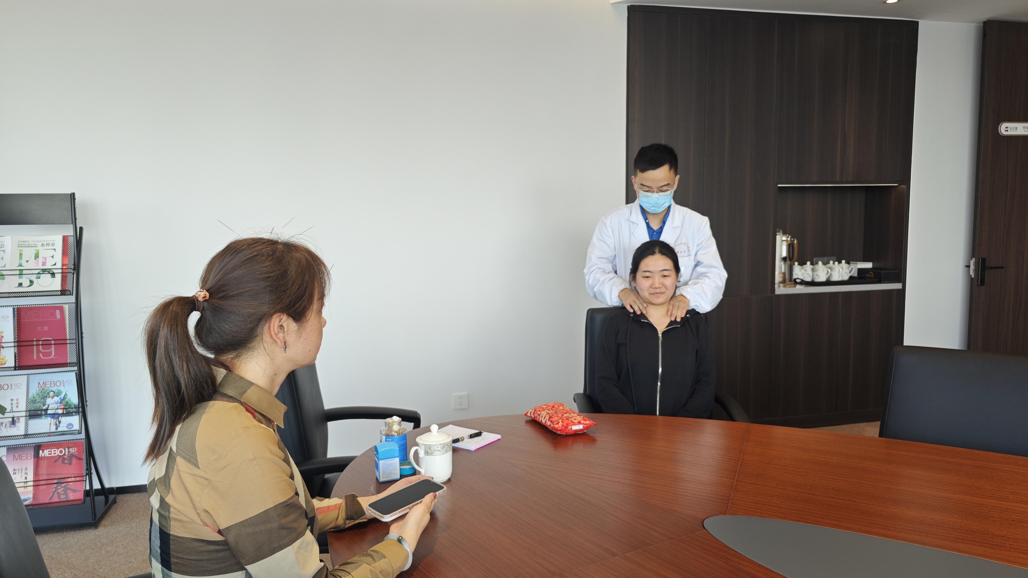 國醫(yī)堂專家們?yōu)槊恳晃磺皝砭驮\的員工進(jìn)行了詳細(xì)的問詢,并通過中醫(yī)診脈、中醫(yī)體質(zhì)辨識后,給出具體的治療方案和用藥建議!針對公司員工反應(yīng)最多的:肩頸酸痛和腰肌勞損問題,胡明醫(yī)師用他精湛的推拿手法,現(xiàn)場為名邦地產(chǎn)員工提供專業(yè)的中醫(yī)診療,活動(dòng)受到了大家的一致好評!