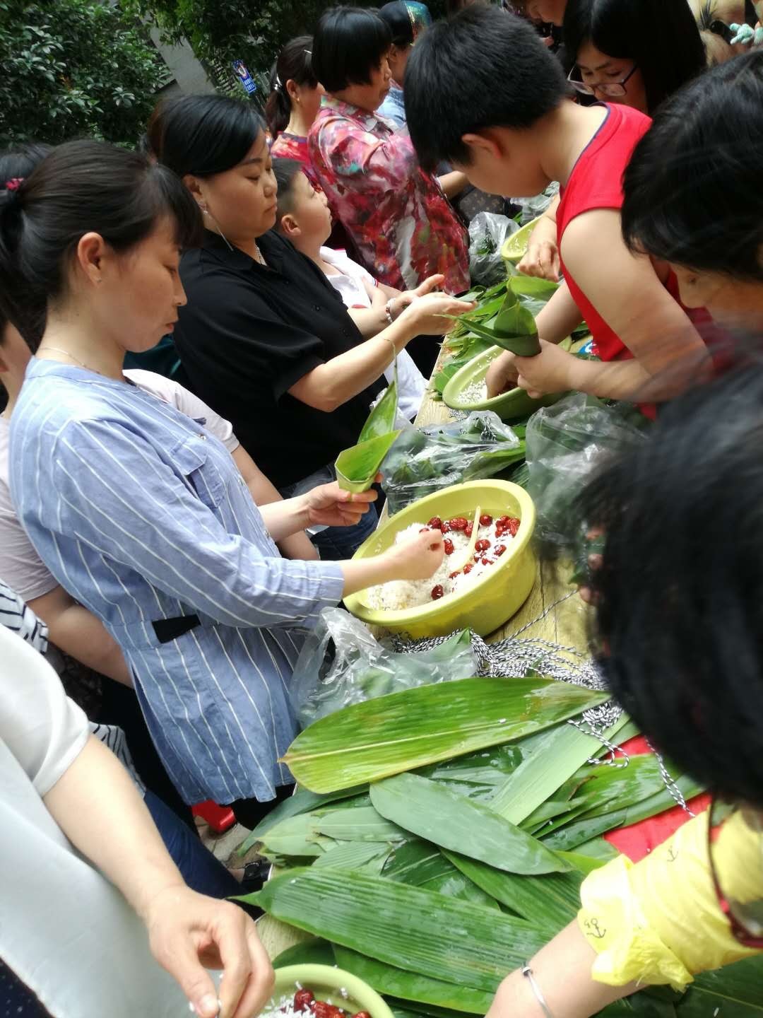 手工活動結(jié)束后,我們又給大家準(zhǔn)備了包粽子比賽,工作人員將事先準(zhǔn)備好的糯米、粽葉、棉線等擺放在桌子上,業(yè)主們磨拳擦掌、各展所能。大家圍在一起,拿粽葉、做漏斗、填糯米、扎捆......不一會兒,三角形、枕頭形等一只只各式各樣的粽子就成了型。最后獲勝的業(yè)主們獲得了豐厚的禮品,看到大家其樂融融的場面,像一家人似的,讓我們倍感親切。