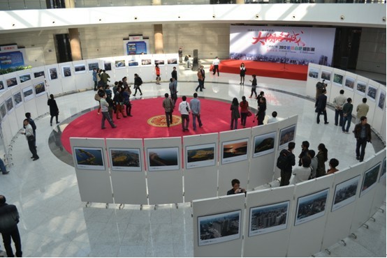 10月23日,金色的晨光,透過(guò)穹彎形圓頂,灑滿合肥市政府中心陽(yáng)光大廳。整整100副美侖美奐的航拍合肥攝影圖片,在陽(yáng)光中熠熠生輝。上午9點(diǎn)30分,“名邦廣場(chǎng)?大湖名城”航拍合肥大型攝影展隆重啟幕。合肥市副市長(zhǎng)吳春梅現(xiàn)場(chǎng)按下啟動(dòng)鈕。
