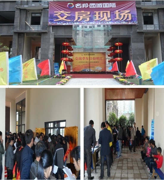 2012年10月26日在“名邦·西城國(guó)際”項(xiàng)目全體工作人員的參與及公司各部門的大力協(xié)助下,項(xiàng)目一期工程2#、3#、5#、6#、7#樓迎來(lái)了全面交付。一期工程共交付1034戶,其中住宅981戶,商鋪 53 戶 。