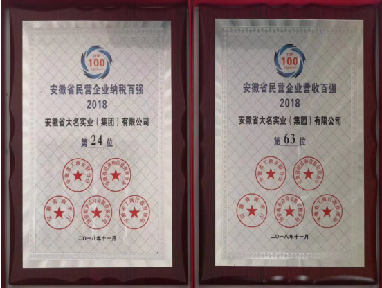 2018年安徽省民營(yíng)企業(yè)百?gòu)?qiáng),安徽省大名實(shí)業(yè)(集團(tuán))有限公司榜上有名