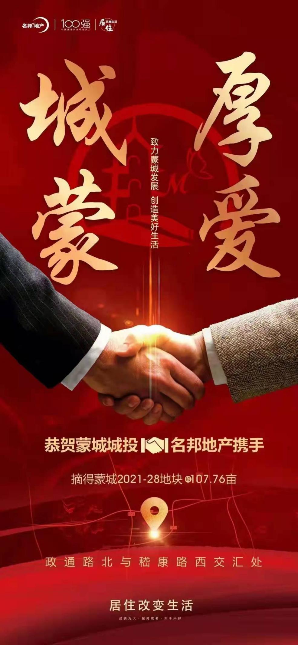 喜報(bào)|安徽名邦置業(yè)(集團(tuán))有限公司攜手蒙城縣城市發(fā)展投資控股集團(tuán)有限公司順利斬獲蒙城【2021-28】號(hào)地塊