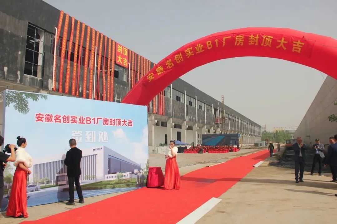 2021年4月17日,安徽名創(chuàng)智慧物流園B1廠房封頂。