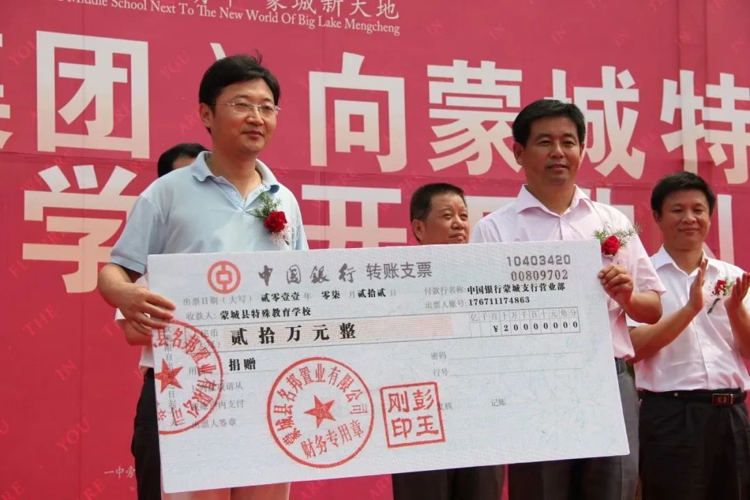 圖為2011年向蒙城特教學(xué)校捐贈(zèng)人民幣20萬元。