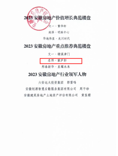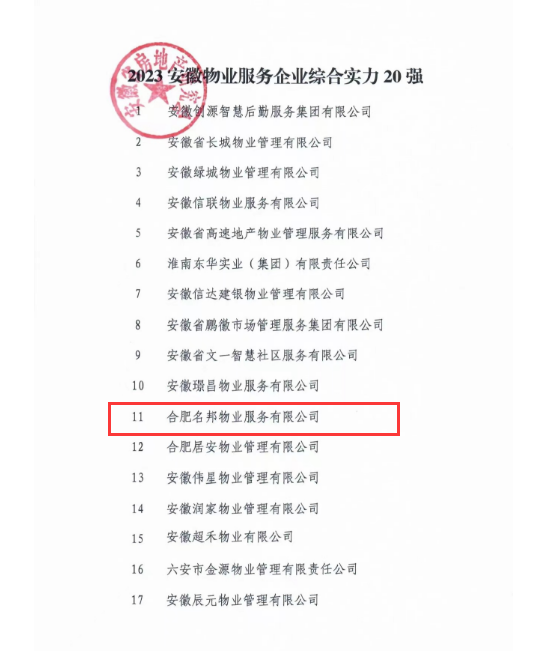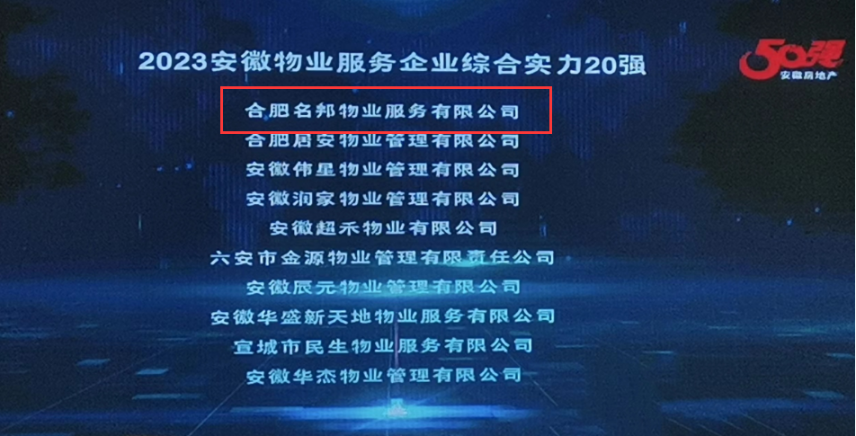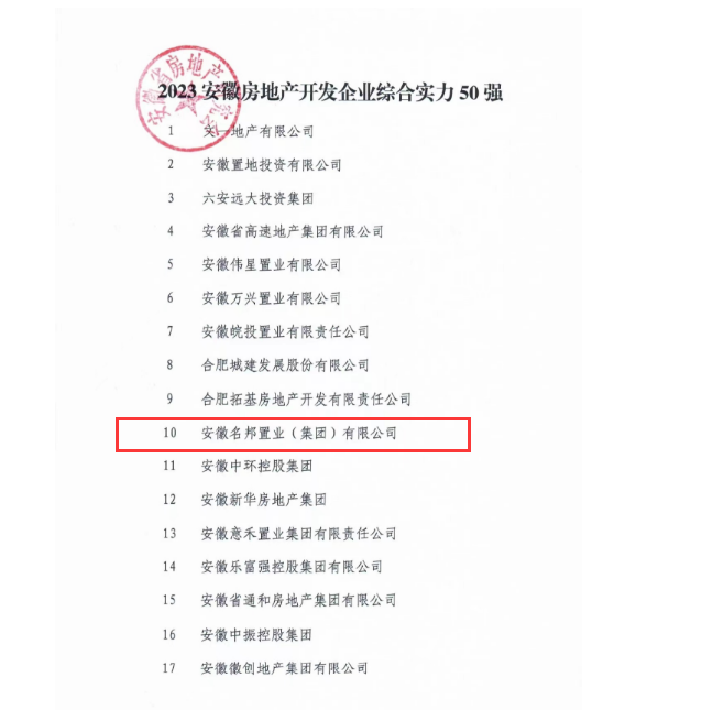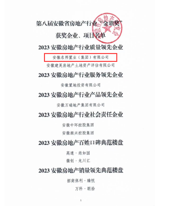 在今年發(fā)布的“2023安徽房地產(chǎn)開發(fā)企業(yè)50強(qiáng)”榜單中,安徽名邦置業(yè)(集團(tuán))有限公司再次榮獲“2023安徽省房地產(chǎn)開發(fā)企業(yè)綜合實(shí)力50強(qiáng)(Top10)”、“2023安徽房地產(chǎn)行業(yè)質(zhì)量領(lǐng)先企業(yè)”,旗下高端樓盤項(xiàng)目“名邦·紫廬軒”榮獲“2023安徽房地產(chǎn)重點(diǎn)推薦典范樓盤”。同時(shí),合肥名邦物業(yè)服務(wù)有限公司再次榮獲“2023安徽物業(yè)服務(wù)企業(yè)綜合實(shí)力20強(qiáng)(Top11)”的稱號(hào)。
