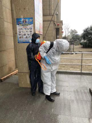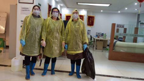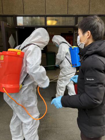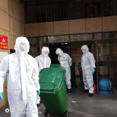 每日垃圾清運結(jié)束,由專人負責(zé)本棟樓的消毒工作(包含走廊、電梯轎廂、單元門廳等),對隔離區(qū)域的各個角落反反復(fù)復(fù)仔細消毒。