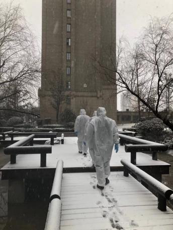 大冬天,口罩濕了、手套臟了,眼睛被汗水浸的沙沙的疼......抗疫工作小組的同事們,真的很仗義!小小的身軀蘊藏著大大的能量,其實這個時候,他們不僅是同事,更是同甘共苦的戰(zhàn)友。