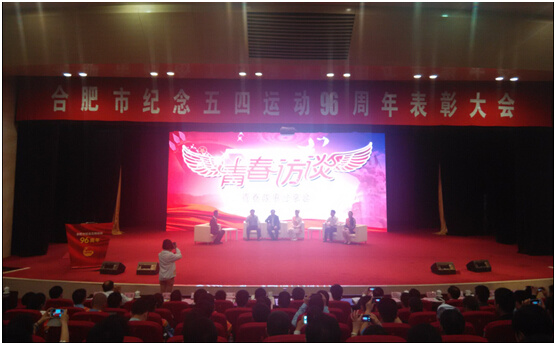 2015年5月4日下午,合肥市紀念五四運動96周年表彰大會在市政務中心小會堂舉行。市委副書記凌云及市主要領導出席大會,大名集團團委分管領導王民中、團委書記徐廣標及受表彰同志江楊陽、李琳浩參加了大會。