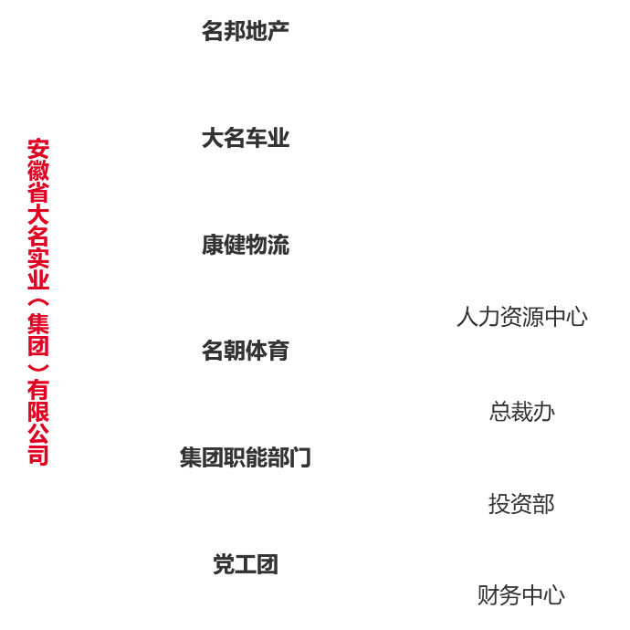 安徽省大名實業(yè)(集團)有限公司,其前身是經(jīng)安徽省體改委批準設(shè)立的全省100家股份制試點企業(yè)之一,是集品牌代理、連鎖服務(wù)、房產(chǎn)投資開發(fā)、資本運營及多元化發(fā)展為一體的民營股份制投資管理型企業(yè)。集團目前主要有四大產(chǎn)業(yè):大名車業(yè)主要經(jīng)營代理品牌汽車及新能源車;名邦地產(chǎn)以房地產(chǎn)開發(fā)為業(yè)務(wù)發(fā)展主線,覆蓋營銷代理、物業(yè)管理、商業(yè)運營、商住智能化及景觀綠化施工等產(chǎn)業(yè);物流集貨物運輸、倉儲、配送、流通加工、包裝為一體,依托完善的運輸網(wǎng)絡(luò)優(yōu)勢,力求提高客戶供應(yīng)鏈系統(tǒng)效率;名朝體育匯集了優(yōu)秀的教練員、運動員、裁判員以及教務(wù)團隊、銷售團隊,目前有七家校區(qū)和一家籃球公園,未來將有更多的校區(qū)陸續(xù)開放中。